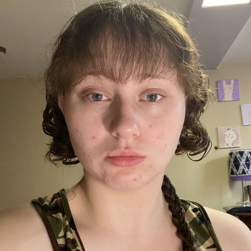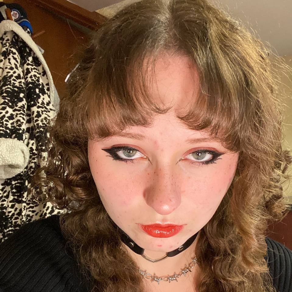 This is an illusion look where the heavy eyeliner makes the image of a lot of makeup, this is great for concerts and cosplay when heavy foundation or details like bronzer are too much for the skin. The face is two tones of concealer in the necessary areas and cream lip and a cheek combination product finished with brown eyeliner for light freckles and powdered highlighter.